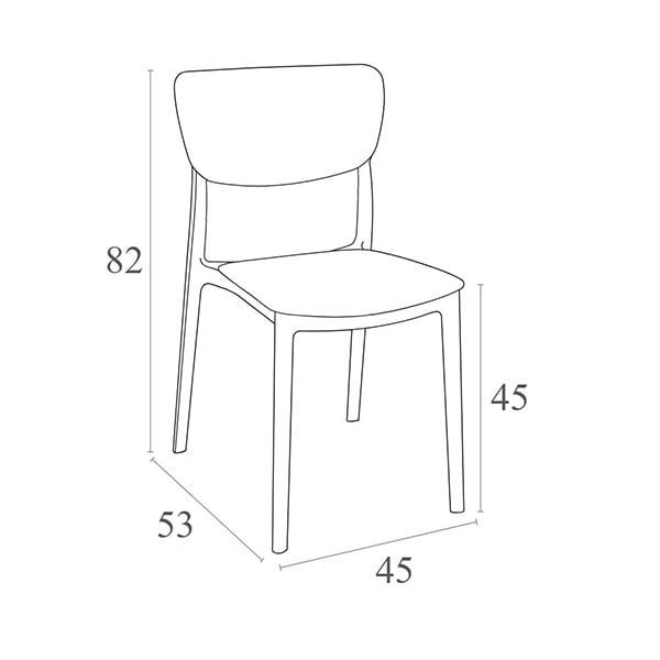 Стол Moon e подсилен със стъклени влакна, получени с помощта на най-ново поколение технология за въздушно формоване, а облегалката е в прозрачен поликарбонат.
