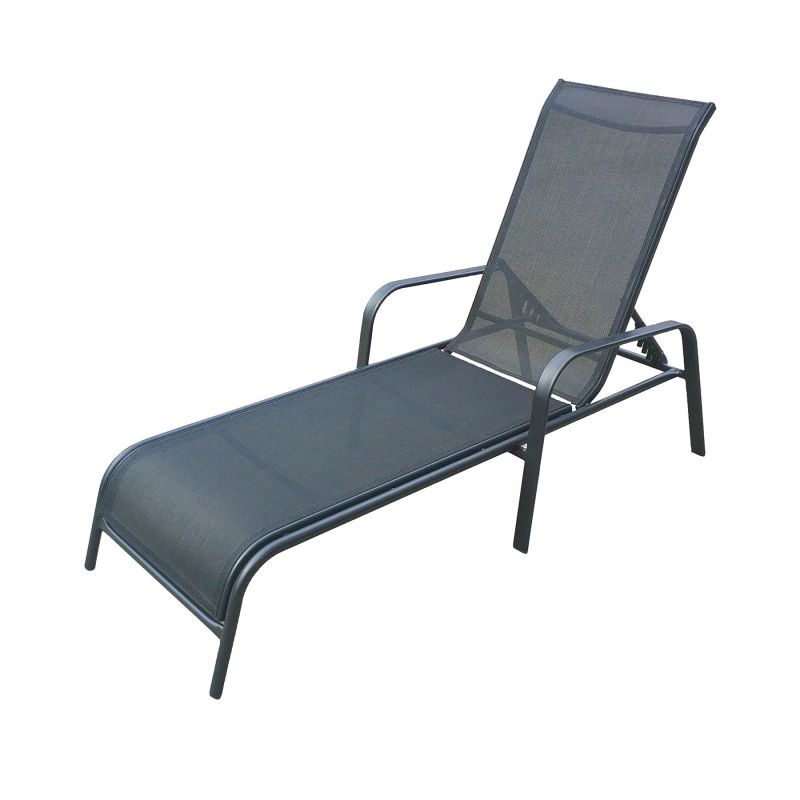 • Метален градински шезлонг с текстилен плат, устойчив на атмосферни влияния.