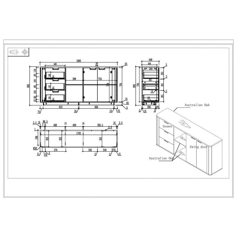 Шкаф RFG Elmaz, 1800 х 400 х 900 mm, ПДЧ, австралийски дъб и сиво