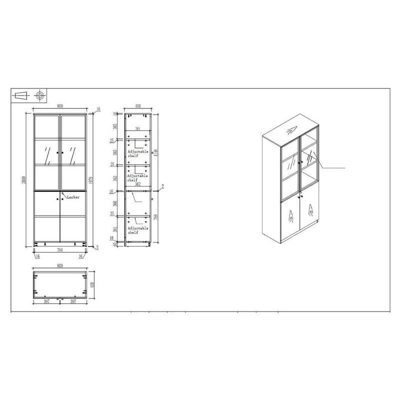 Шкаф RFG Parma, със стъклени врати, 800 х 400 х 2000 mm, ПДЧ, орех и тъмносиво