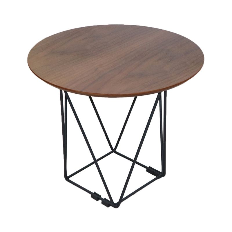 Ниска маса RFG Erika H, 52 x 52 x 42 cm, кръгъл плот, ПДЧ 18 mm, плот орех, черни метални крака, сглобена мостра