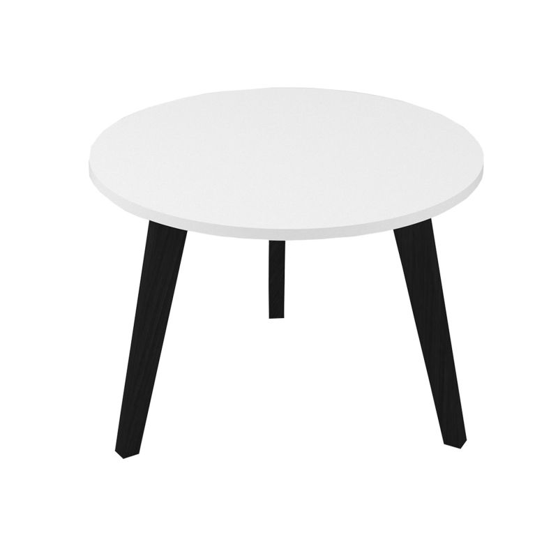 Ниска маса Narbutas Nova Wood, 700 x 700 х 480 mm, кръгъл плот, ПДЧ, бял меламин, черни дървени крака