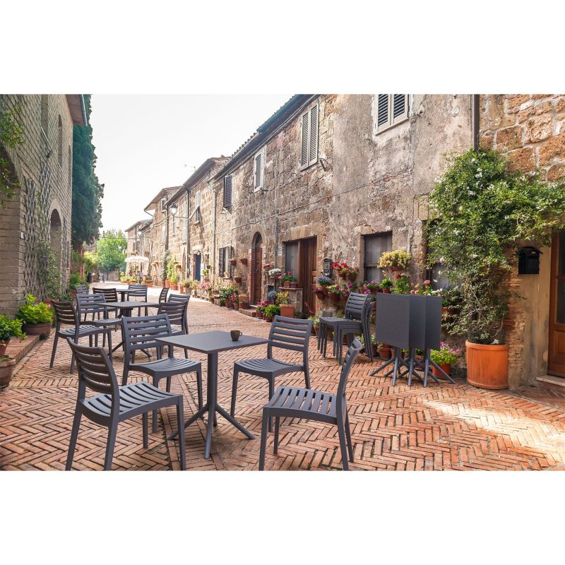Сгъваемата висока маса е изработена от качествен материал - смола, който е устойчив на атмосферни влияния.