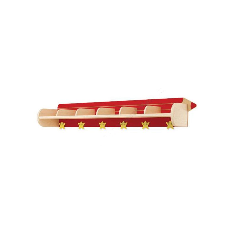 Рафт за книги, учебници и ученически аксесоари с атрактивен дизайн на молив.