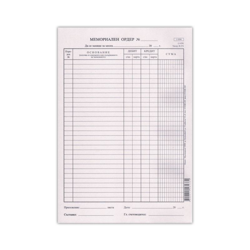 Мемориален ордер, голям, 100 листа