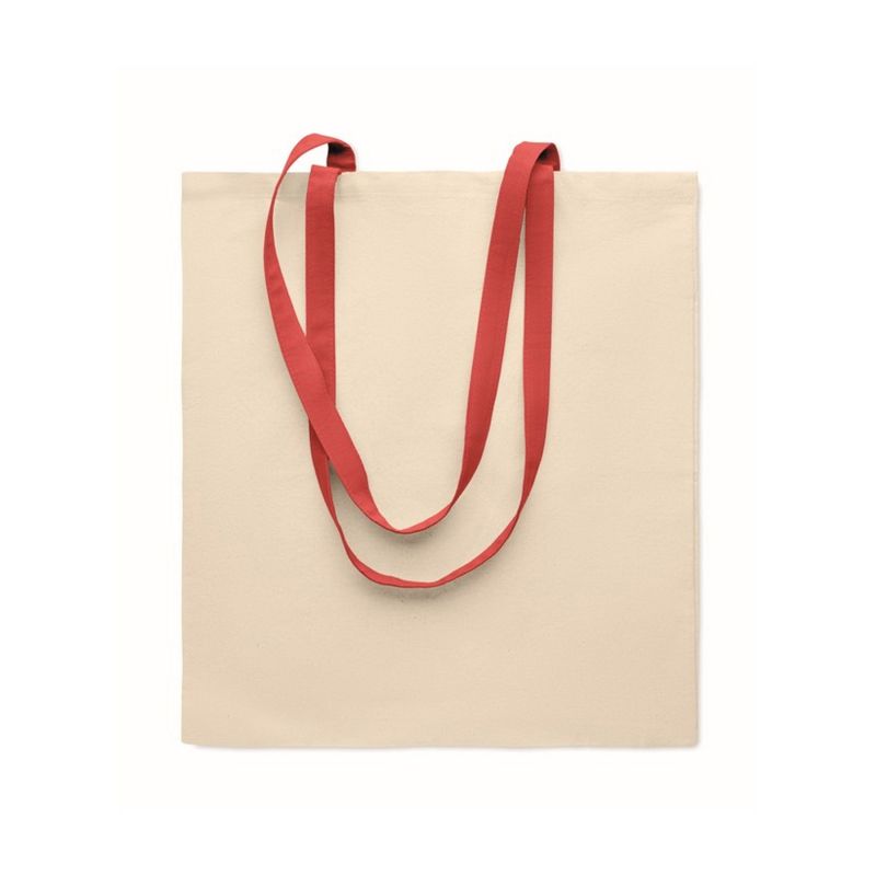 Памучната пазарска чанта е проектирана с дълги дръжки в червен цвят, които освен, че правят носенето на покупките лесно и удобно, са чудесен завършек на всяко облекло!