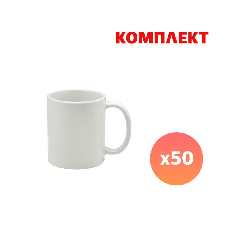 BESTSUB Чаша, керамична, клас АА, бяла, 330 ml, с пълноцветен печат, 50 броя