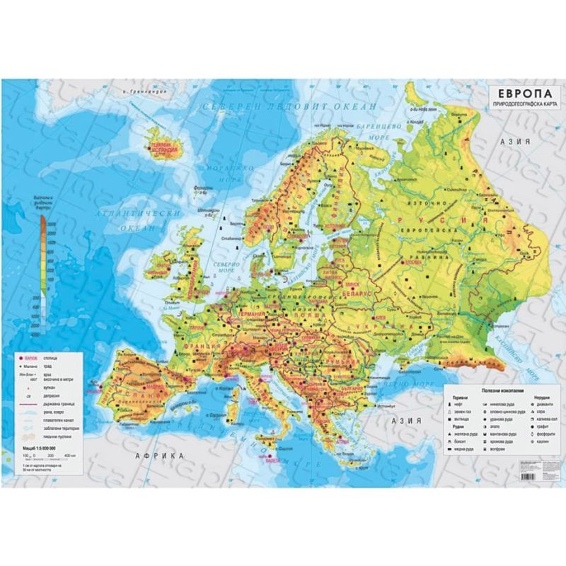 Стенна карта на Европа, физическа, 100 x 70 cm