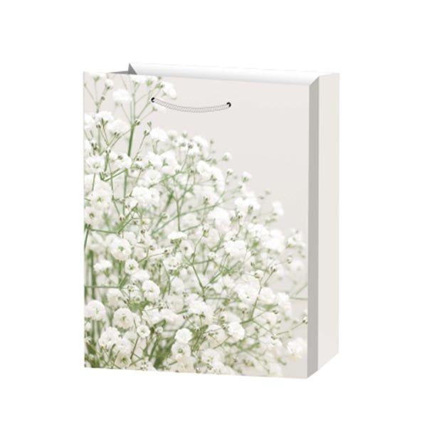 Подаръчна торбичка, цветя, 26 х 32 х 10 cm, бяла