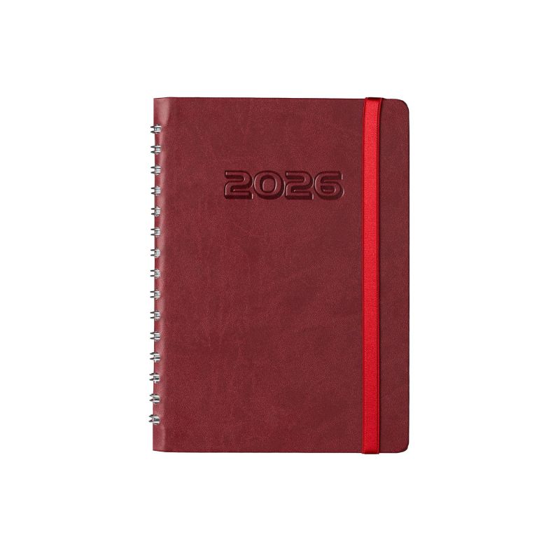 Календар-бележник, А5, с дати, със спирала и ластик, луксозен, бордо