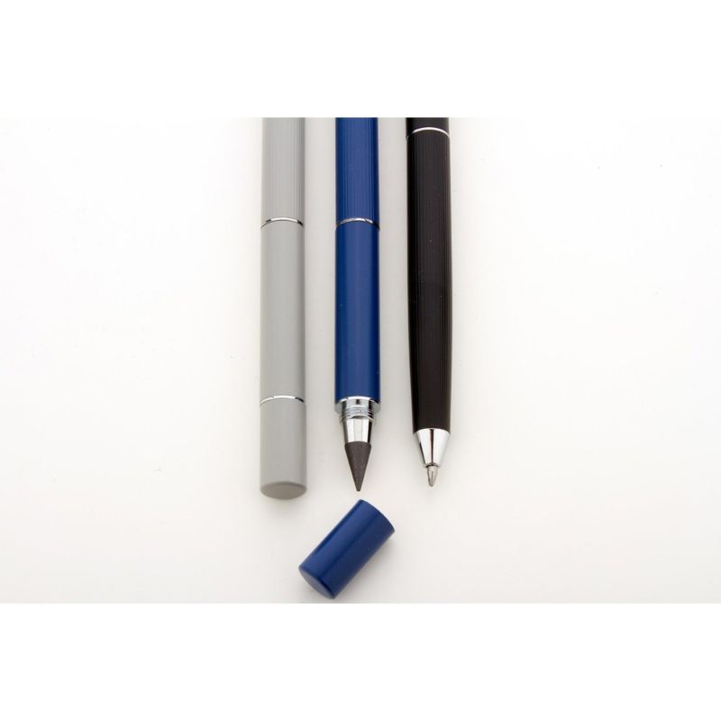 ELEVOID 2 в 1 INKLESS метална въртяща се химикалка в черна подаръчна кутия.С връх от метална сплав, който оксидира хартията. Размери: 160 х 28 х 25 mm.