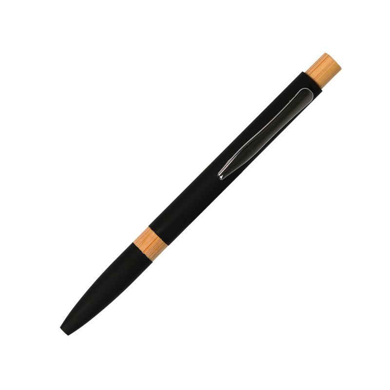 Office 1 Химикалка Mentor, метална, гумирана, бамбуков топ, черна