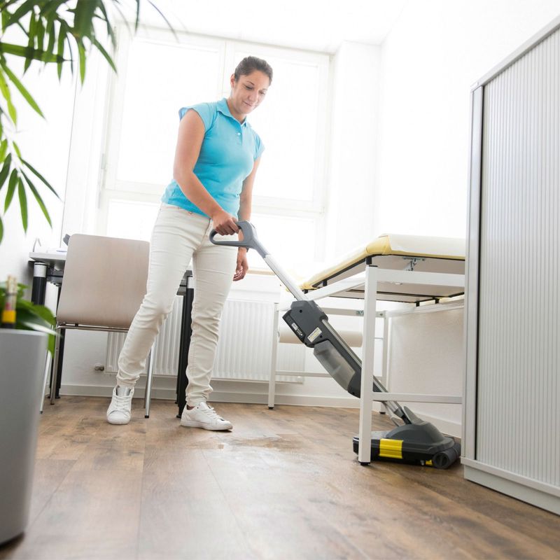 Захранвана от високоефективна 18-волтова литиево-йонна батерия от Karcher Battery Universe, машината е подходяща за почистване на по-малки площи в хотели, болници, медицински центрове, магазини и др.