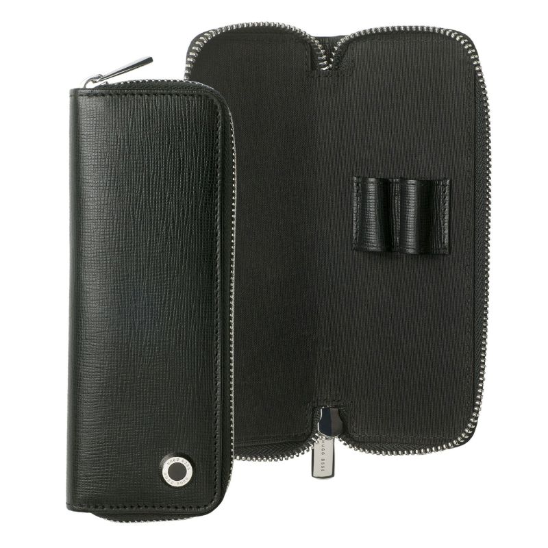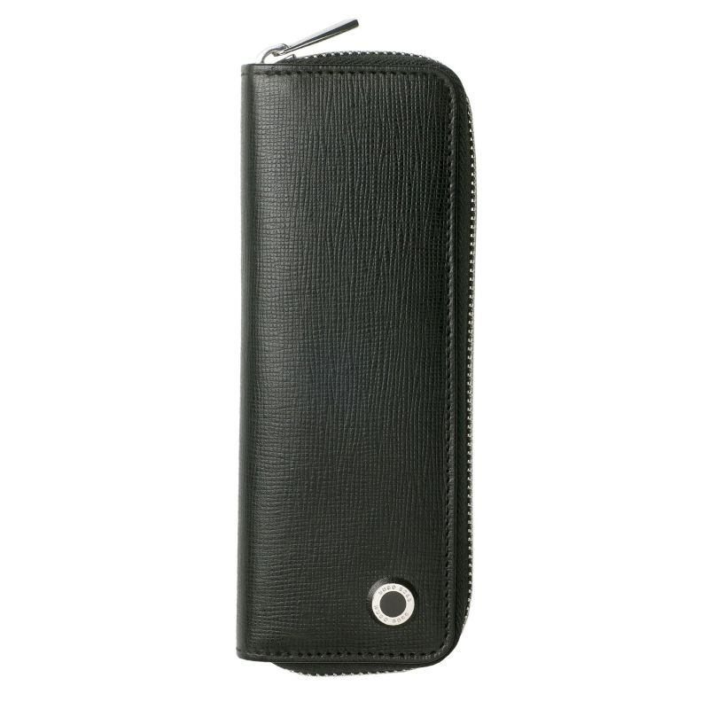 Hugo Boss Калъф Tradition, за две пишещи средства, с цип, кожен, черен