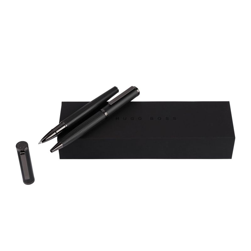 Hugo Boss Комплект химикалка и ролер Formation Herringbone, в кутия, черни