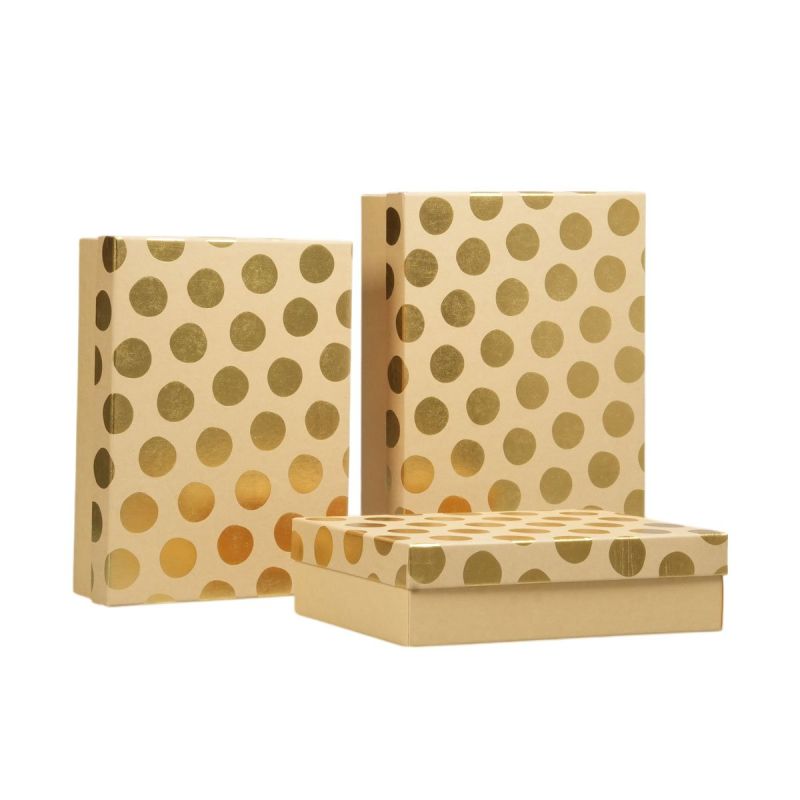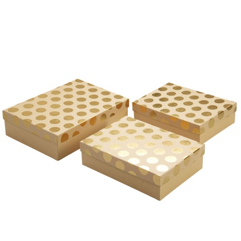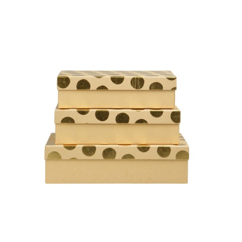Подаръчна кутия, златни топчета, кафява, 3 броя
