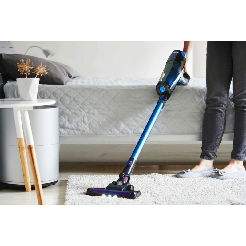 Този модел позволява свободно маневриране, а благодарение на издръжливата литиева батерия устройството има работно време от 30 минути, достатъчни за почистване на голяма къща.