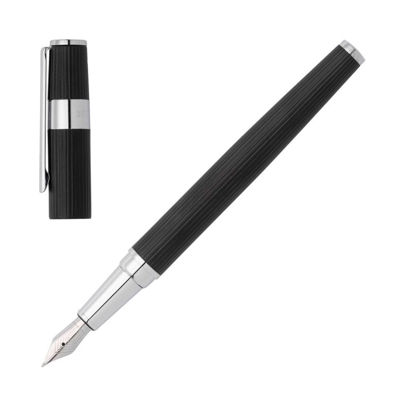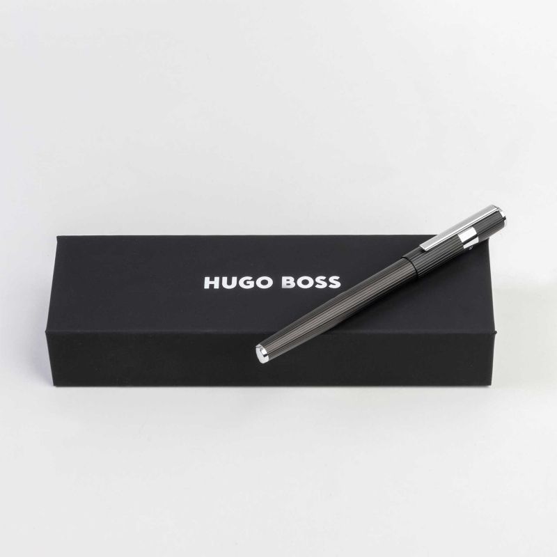 Hugo Boss Писалка Gear Pinstripe, в кутия, черно-сребриста