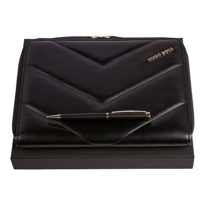 Hugo Boss Комплект химикалка и конферентна папка Triga, А5, черни
