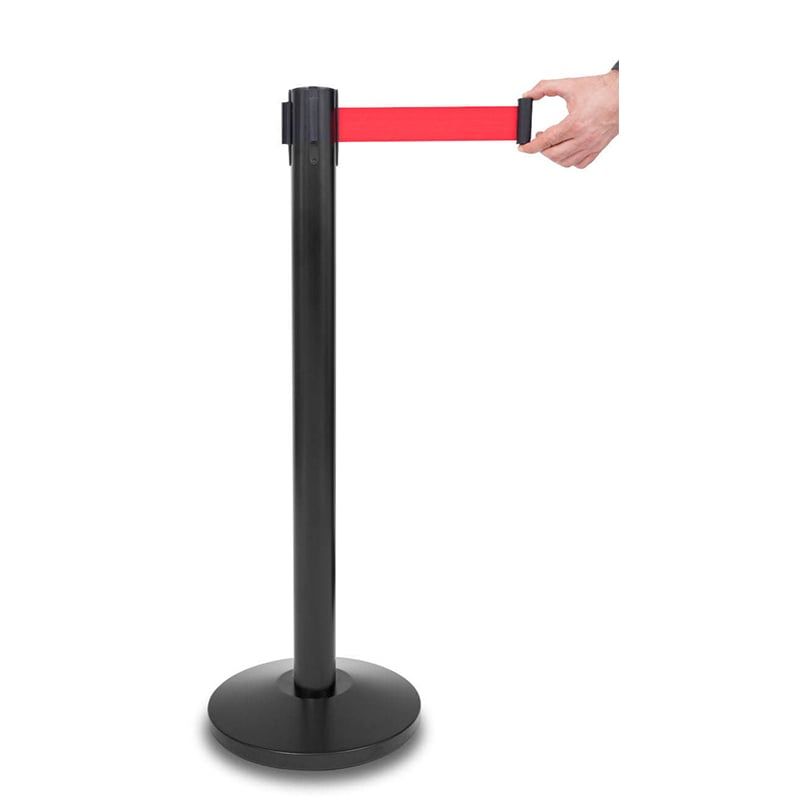 Ограничително колче, черно, с червена лента, 235 cm, ш 320 mm, в 920 mm