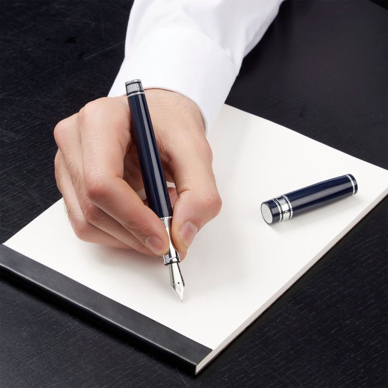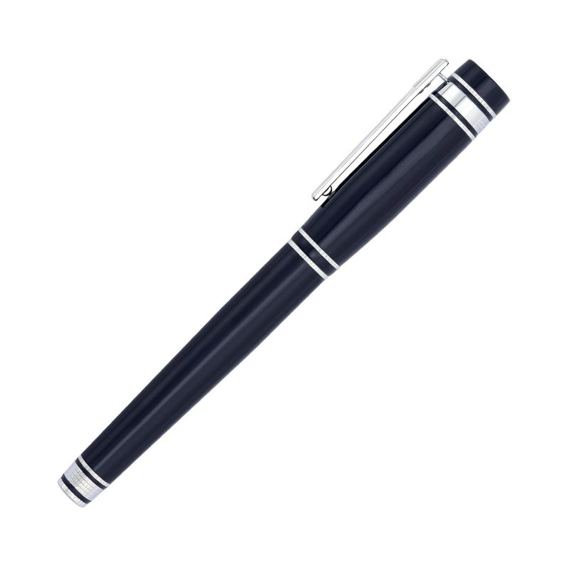 Леко уголеменият силует на писалката е завършен с лъскав лак и подсилен с хромирани акценти и детайлни гравюри.
