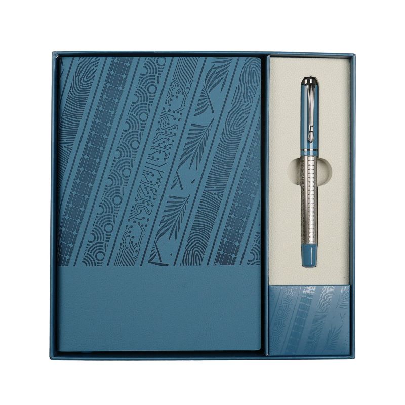Office 1 Комплект тефтер и химикалка Floral Blue, в кутия, сини