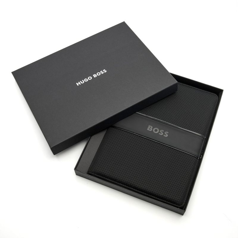 Представяме ви папка от серията Arche, която съчетава съвременен дизайн и функционалност. Налични единствено в елегантния черен цвят, тези папки демонстрират иновативно съчетание между мрежест материал и полиуретан с гумено покритие. Тяхната симбиоза създава ангажиращо и активно изживяване при допир. Матовите елементи допълнително допринасят за елегантният завършек.
