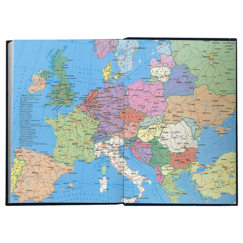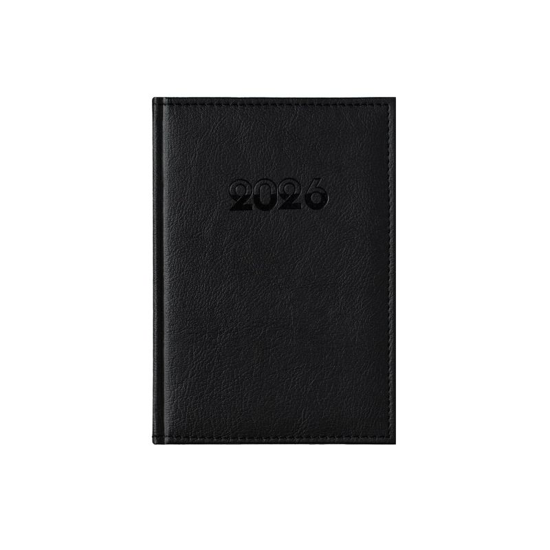 Календар-бележник Европа, с дати, A5, кожена подвързия, черен