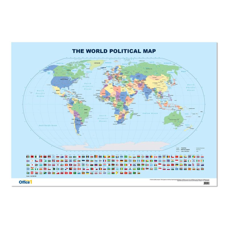 Office 1 Стенна карта на света, политическа, 100 x 70 cm