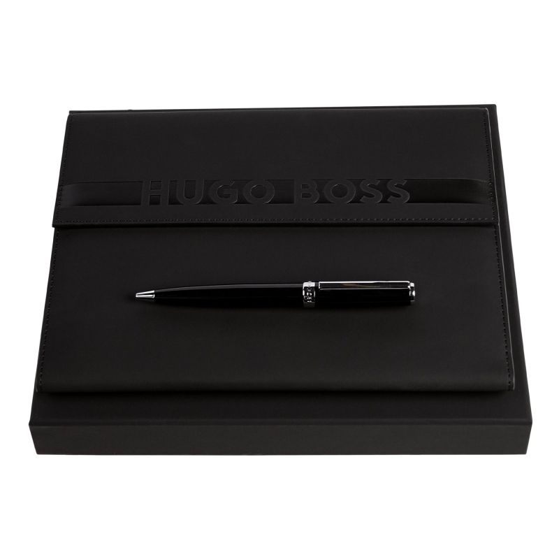 Hugo Boss Комплект химикалка и конферентна папка Cloud Matte, А5, черни със сребристи елементи
