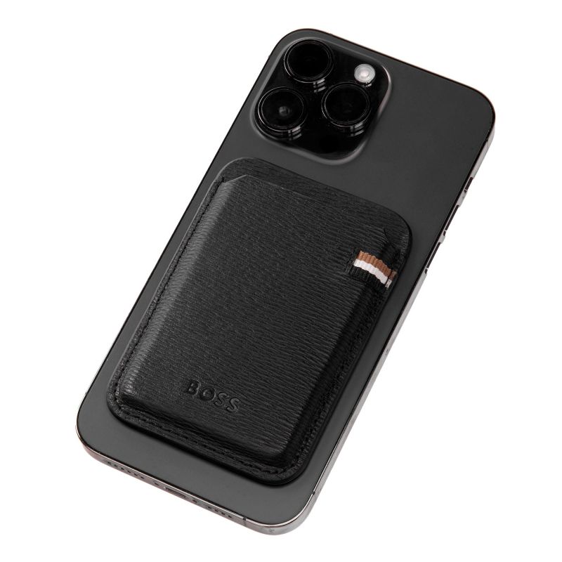 Калъф за карти с MagSafe от серията Iconic на Hugo Boss. Калъфът може да се залепи за всеки телефон, който разполага с MagSafe.