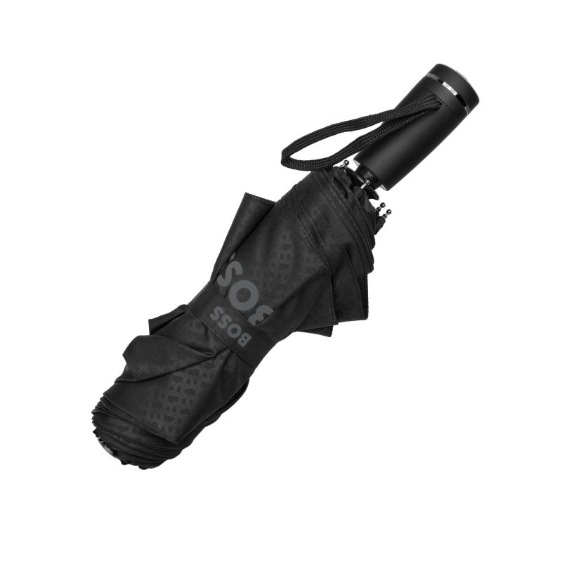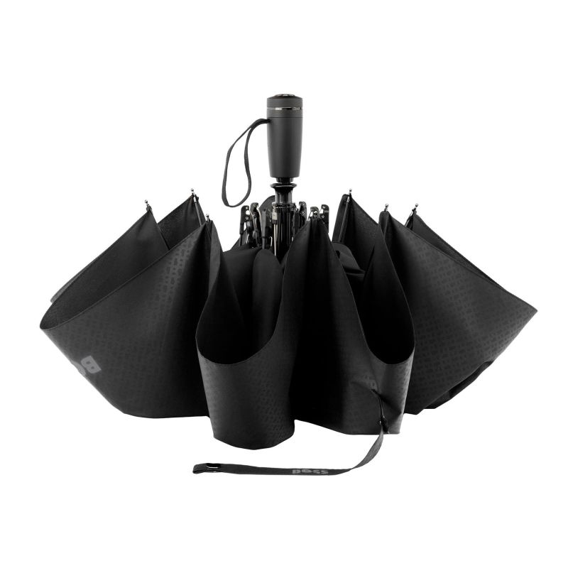 Hugo Boss Чадър Pocket Double B, сгъваем, черно-сив