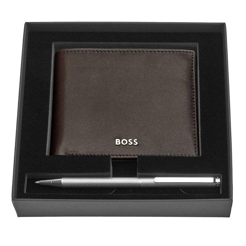 Линията Boss Classic Smooth се характеризира с внимателно подбрани висококачествени кожи и минималистичен дизайн. Всички артикули са умело събрани и красиво завършени с хромирани елементи. Комплектът съдържа химикалка и калъф за карти.