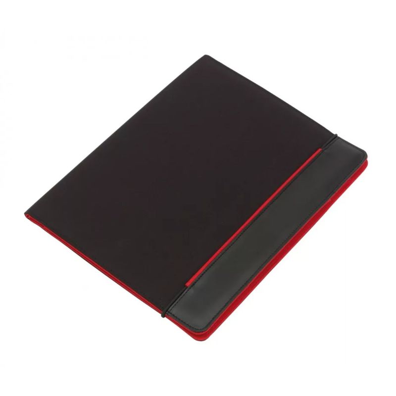Проектиран е с подложка за писане, джобове и еластична лента за сигурно затваряне.