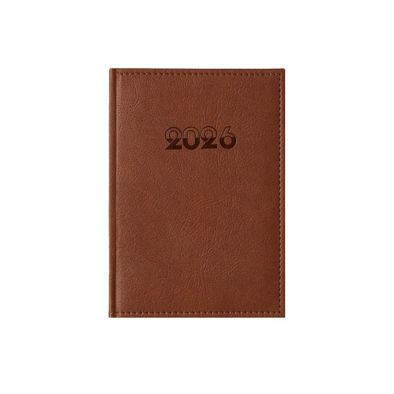 Календар-бележник Европа, с дати, A5, кожена подвързия, кафяв