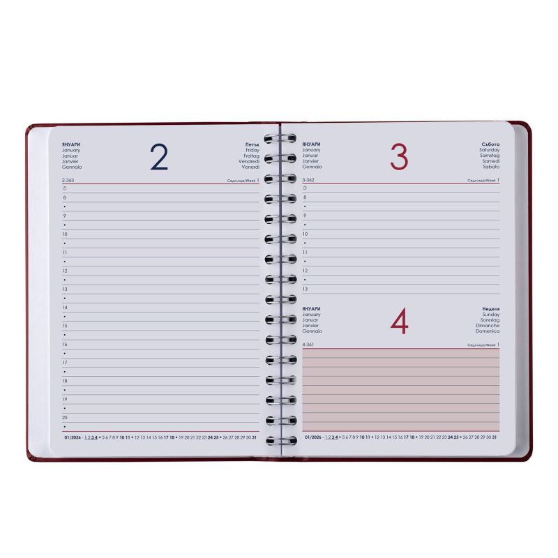 Календар-бележник, А5, с дати, със спирала и ластик, луксозен, син