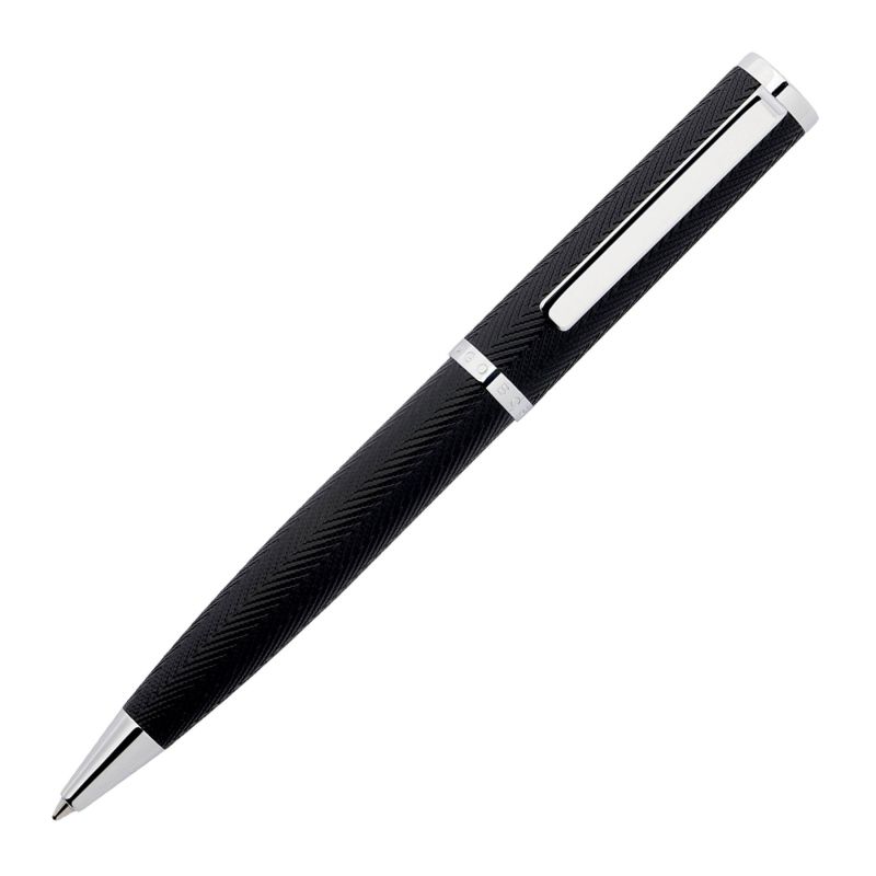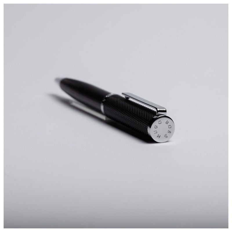 Hugo Boss Химикалка Formation Herringbone, в кутия, сребристо-черна