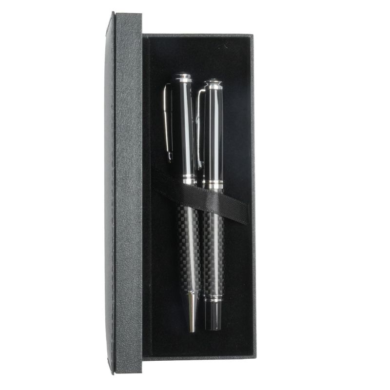 Office 1 Комплект химикалка и ролер Carbon, метални, черни