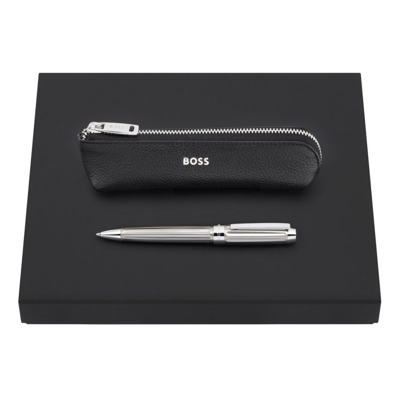 Стилен комплект от малък несесер и химикалка от серията Beam на Hugo Boss.