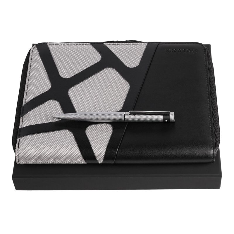 Hugo Boss Комплект папка Craft, A5 и химикалка Loop Diamond, хром