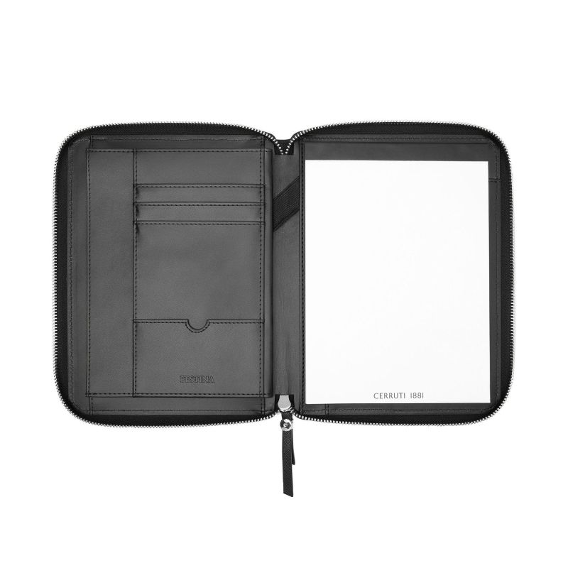 Във вътрешността си папката има джобчета са визитки и бележки.