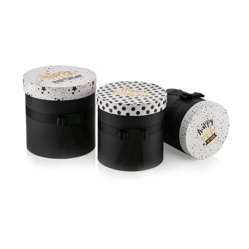 Gipta Подаръчна кутия Happy Birthday, с капак и панделка, кръгла, Ø 200 х 210 mm
