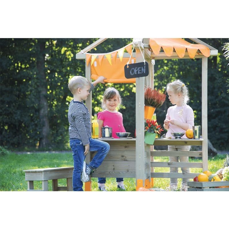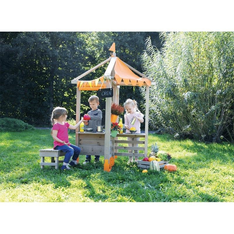 Там могат да играят няколко деца едновременно. Павилионът предлага достатъчно място. Има много опции за игра, като щанд/пазар, павилион, щанд за сладолед или снек бар/ресторант.