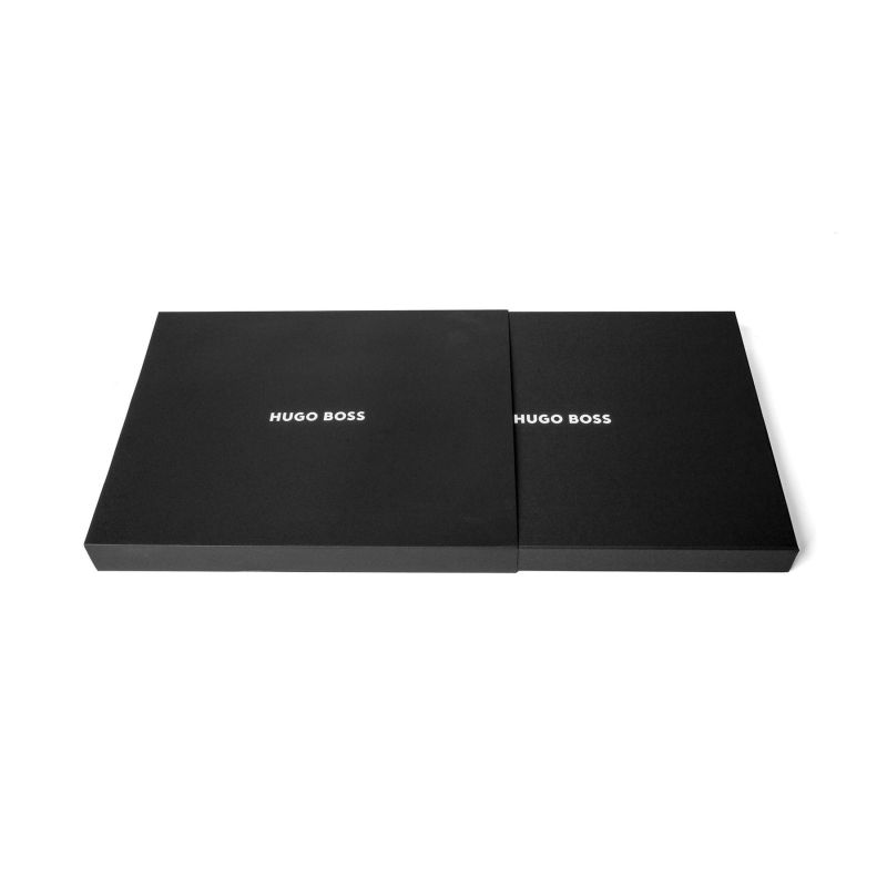 Едновременно смели и сдържани, папките от серията Monogram са изработени от качествен материал, деликатно щампован с емблематичното лого на HUGO BOSS. Те са идеалния работен аксесоар за всеки държащ на стила в офиса.