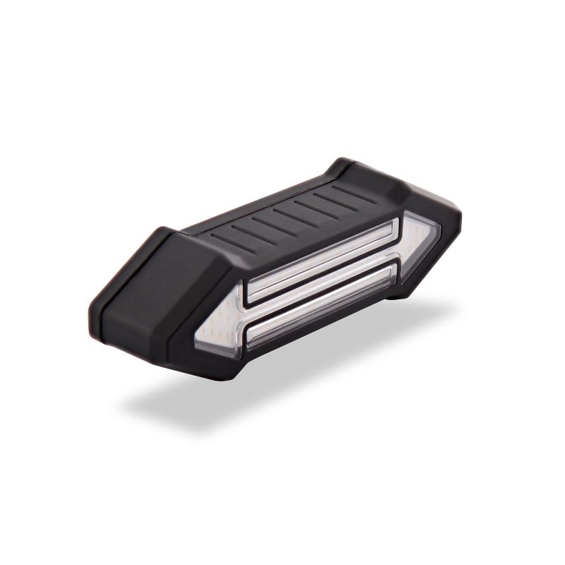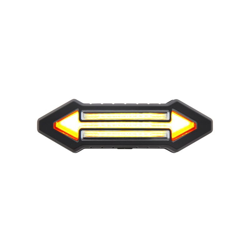 Мигачи за колело с фиксираща система за поставяне под седалката. Този продукт предлага 3 режима: стрелка за ляв завой; стрелка за десен завой и SOS (CENTRAL RED LED BAR), за да сигнализирате, че имате проблем. Има дистанционно управление, което се поставя на кормилото на велосипеда. То осигурява безопасен контрол на светлинния сигнал, докато карате колелото си.