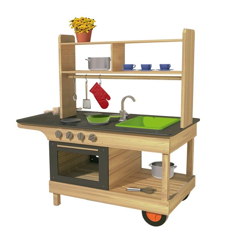 Външната кухня ще осигури часове забавни ролеви игри за децата и ще ги превърне в гурме готвачи. Те могат да готвят на четирите котлона и да пекат във фурната.
