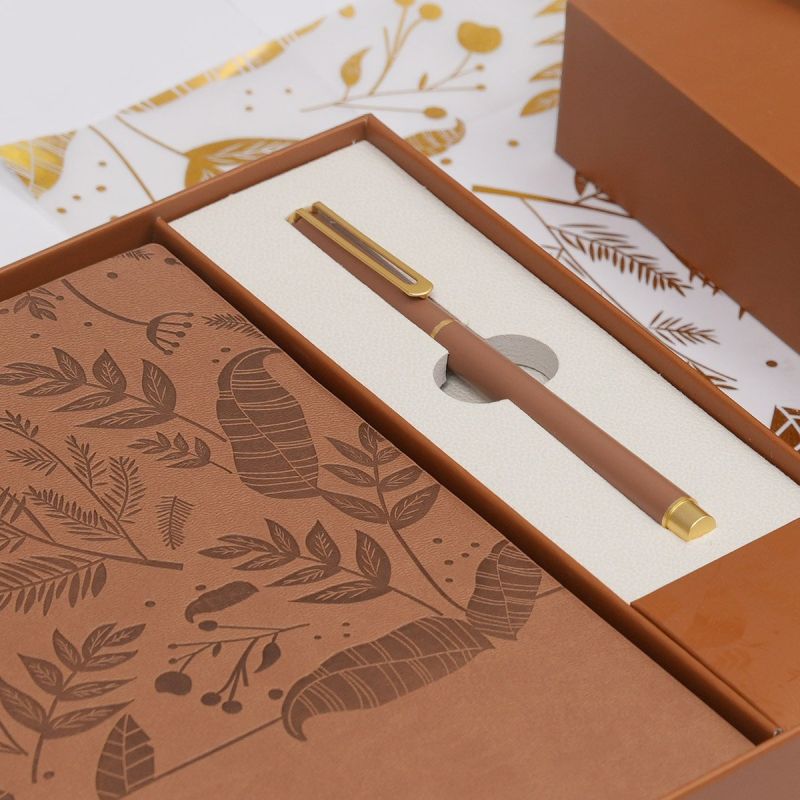 Office 1 Комплект тефтер и химикалка Floral Brown, в кутия, кафяви