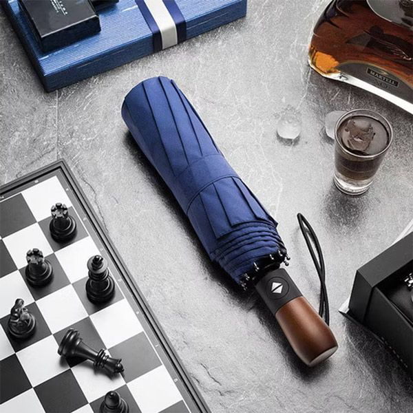 Office 1 Чадър Open/Close, автоматичен, диаметър 105 cm, дървена дръжка, син