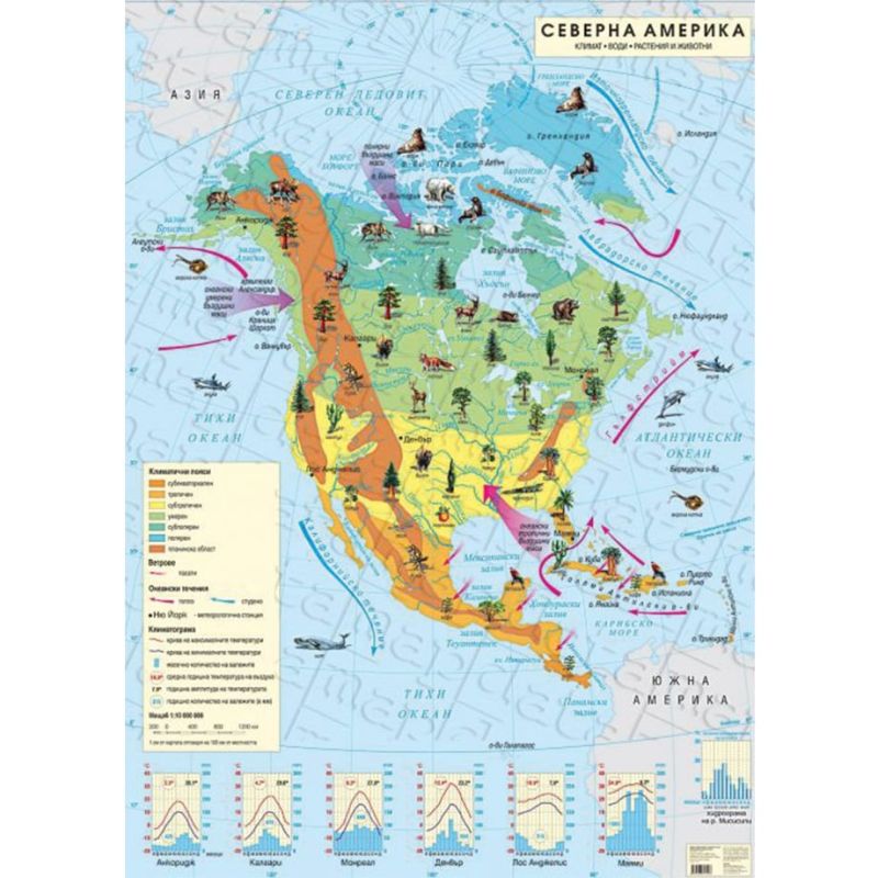 Стенна карта на Северна Америка, климатична, 140 x 100 cm, ламинирана