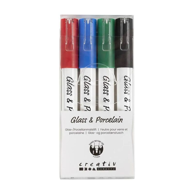 Creativ Company Маркер за стъкло и порцелан, червен, син, зелен и лилав, 4 броя
